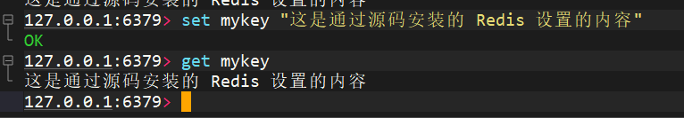 7. 使用源码构建Redis最新版本,启动服务并进入Redis命令行,set任意内容并get